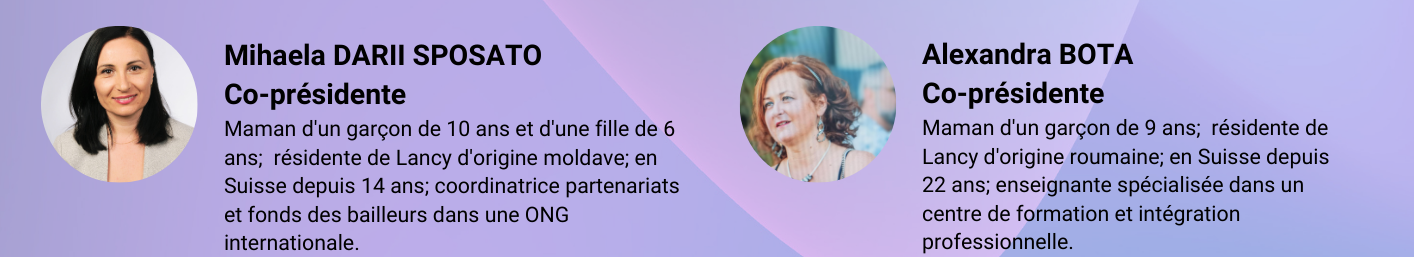 “Notre quête d’une solution d’enseignement structurée et pérenne de la langue et de la culture roumaines pour nos enfants a été longue et réfléchie. La création d’une école de langue roumaine dans le canton de Genève s’est imposée comme une évidence. Nous nous sommes lancées dans cette initiative convaincues que nous agissions pour l’enrichissement culturel de nos enfants.”